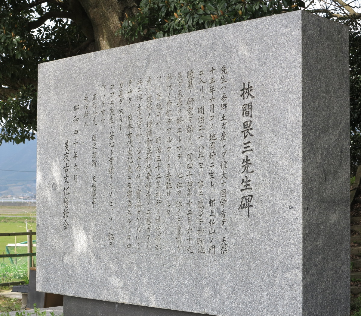 古墳時代の岩屋古墳、上片島遺跡群、「神代帝都考」の著者「狭間畏三」の碑。