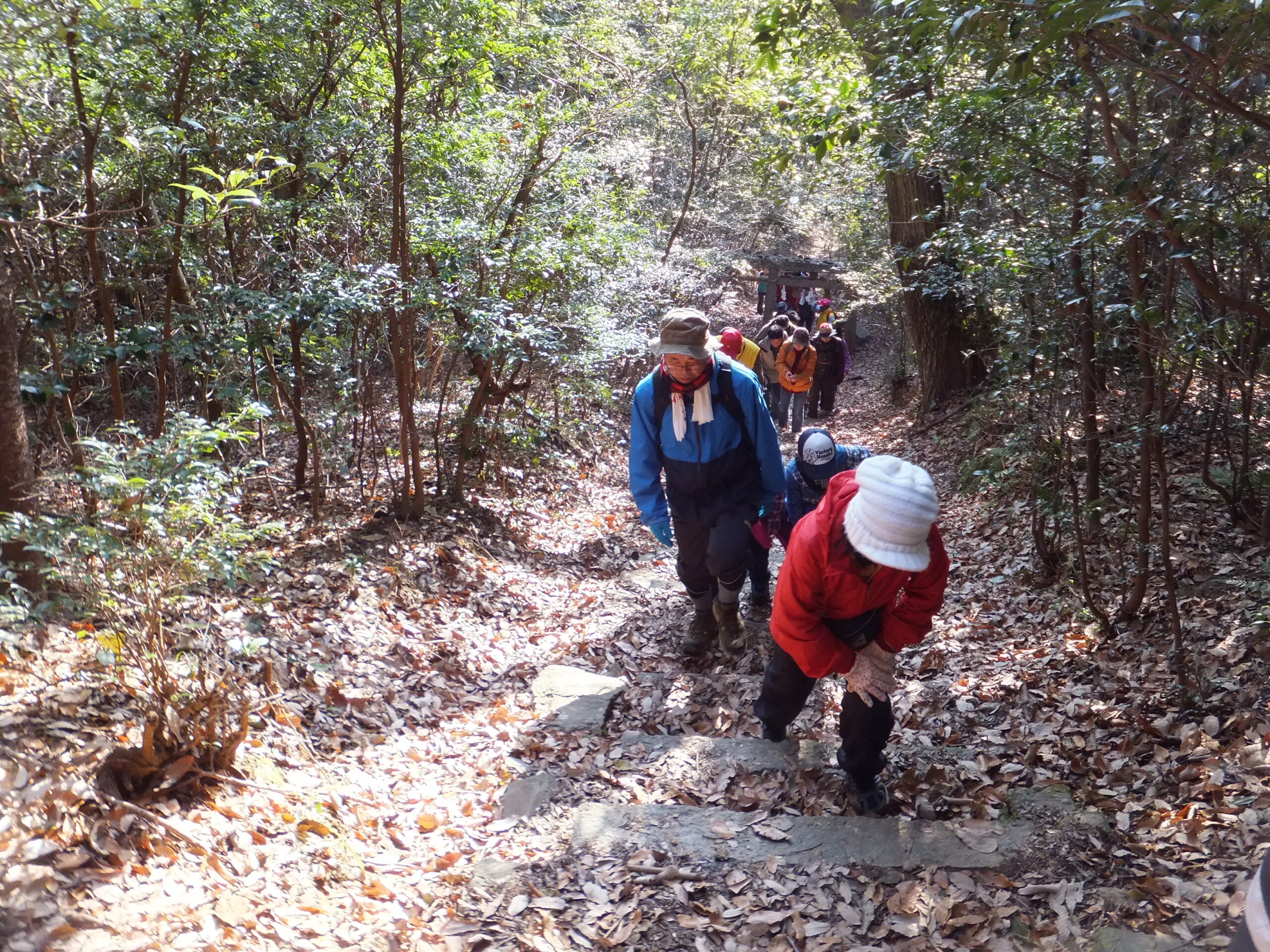 小波瀬西工大前駅南側ロータリー(集合) ⇒ 猪熊登山口 ⇒ 猪熊山 ⇒ ソーエム山 ⇒ 龍智山 ⇒ 山の神 ⇒ 隠れ山 ⇒ 諌山手前展望台(昼食休憩) ⇒ (希望者のみ高城山往復) ⇒ 新津登山口 ⇒ 小波瀬西工大前南側ロータリー(解散)