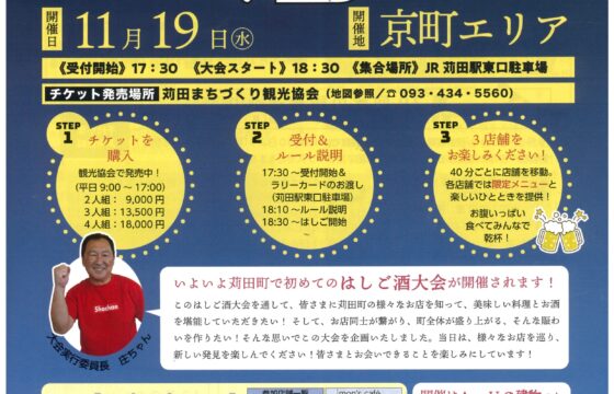 4月5日 春の苅田えきらく大市 令和7年4月5日(土) 時間:11:30~15:00(入場無料) 場所:JR苅田駅(駅東口広場多目的スペース) 主催:一般社団法人まちづくり観光協会(苅田町京町1-11-1) ※お問い合わせは事務局へご連絡ください 電話...